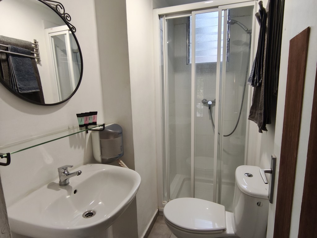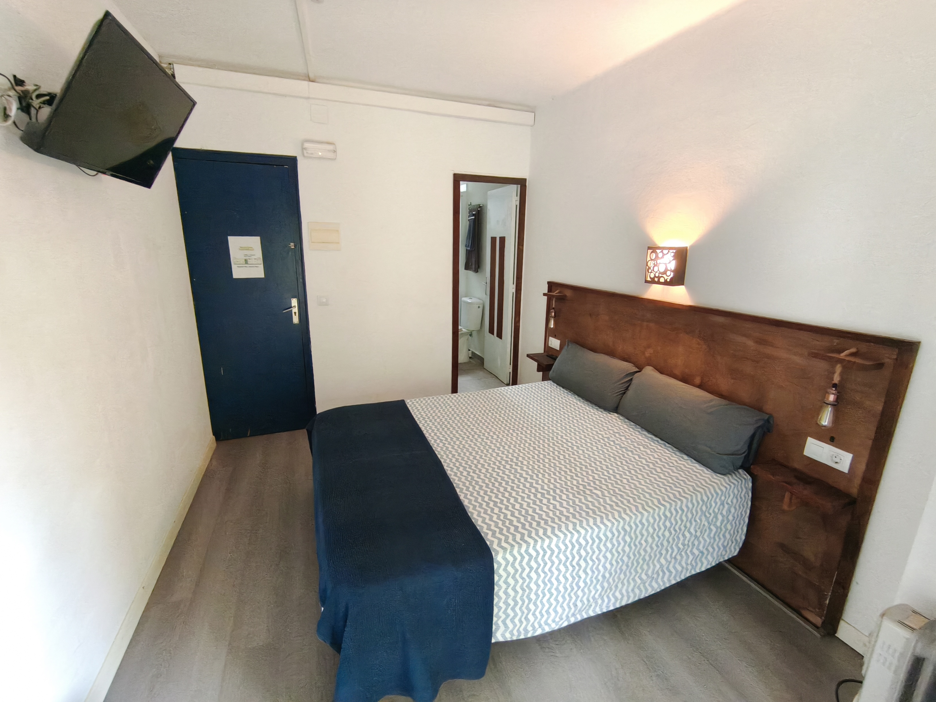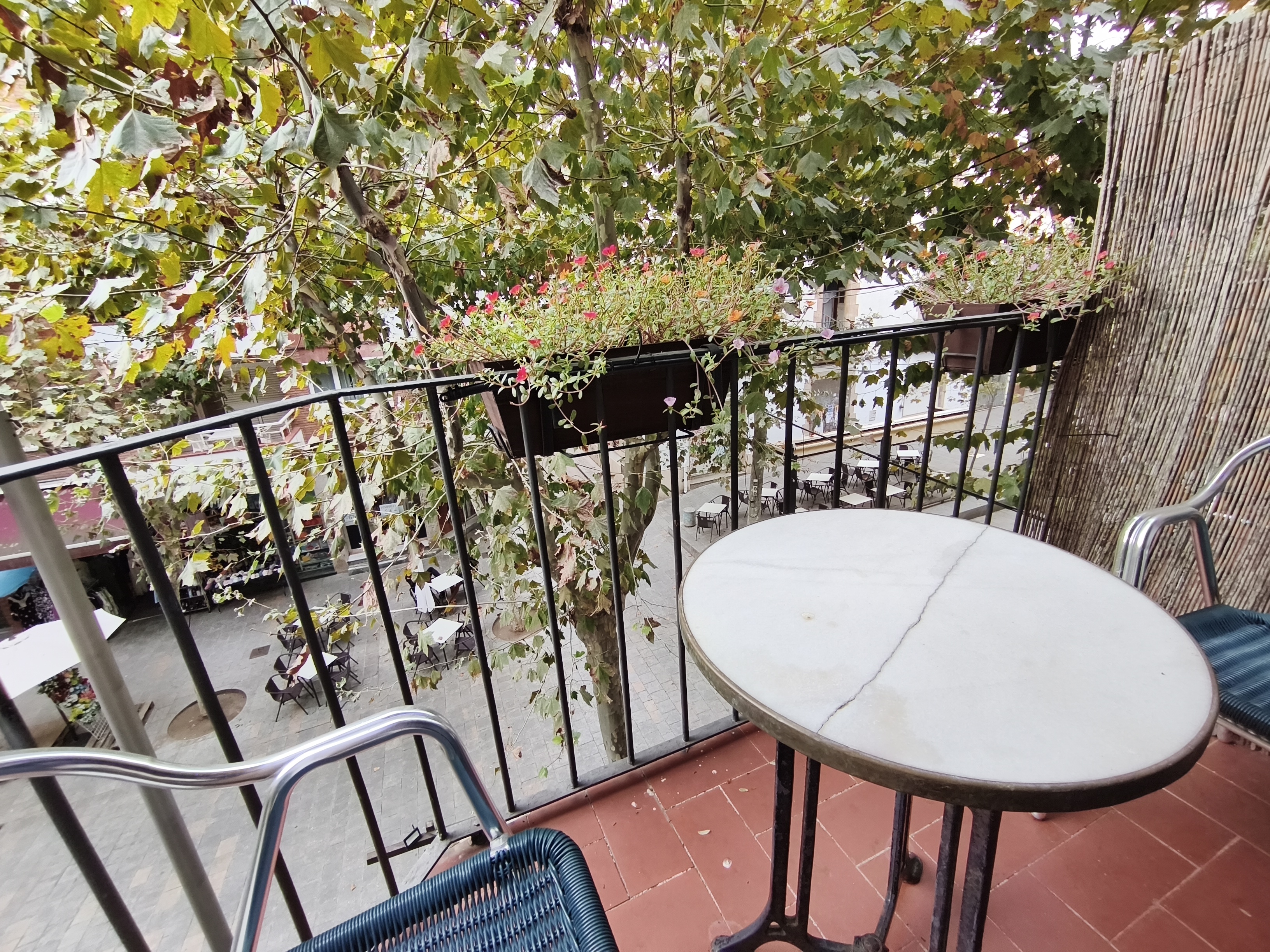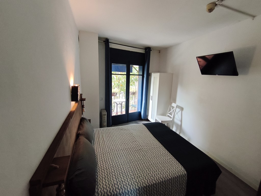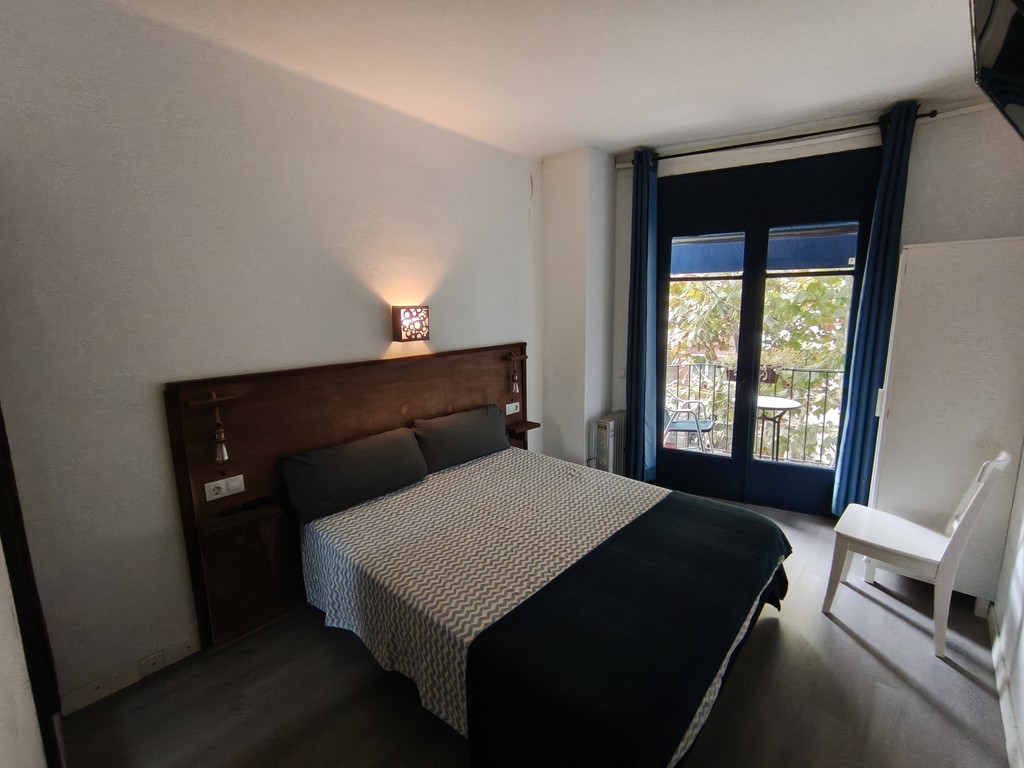 Habitación número 8 con balcón y vistas parciales al mar y al paseo en nuestro "Hostalet" del centro de Canet de Mar, Barcelona, a 100 m de la playa, a 50 m de la estación y a 50 km (45 minutos) del centro de Barcelona.  disfrutar de la playa caminando rodeado de gastronomía, comercios y ocio.